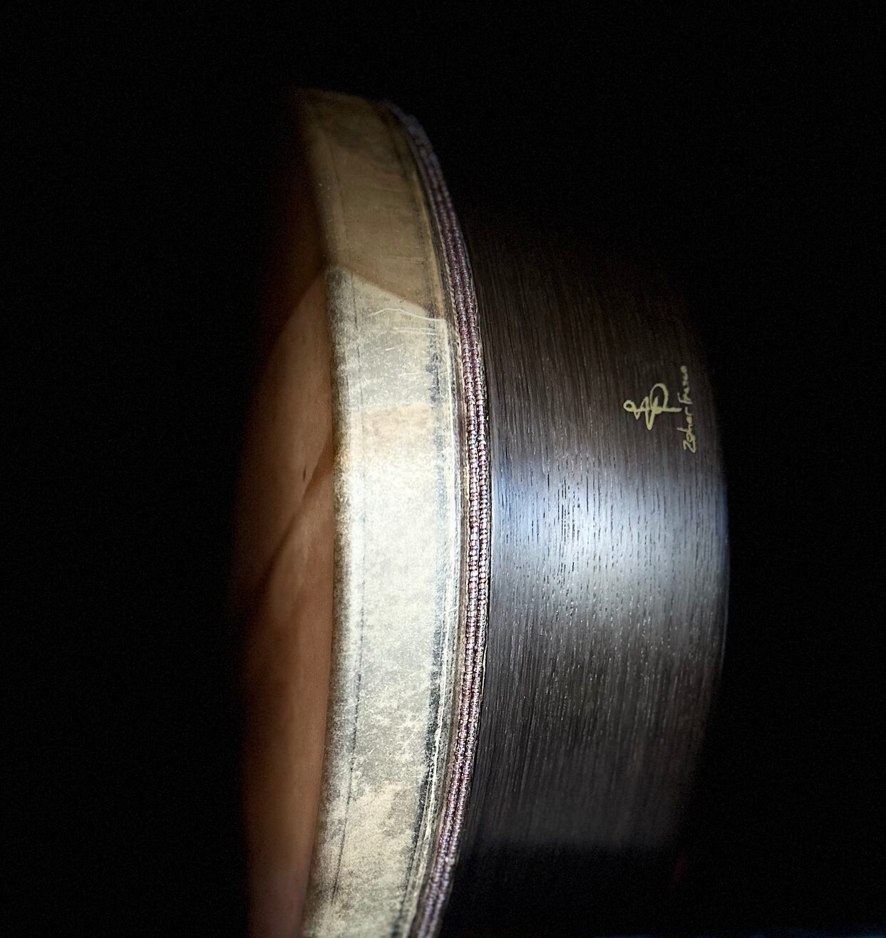 Bęben obręczowy to instrument perkusyjny wywodzący się z krajów basenu Morza Śródziemnego, posiadający różne nazwy jak Tof, Tef, Bendir, Tar, Bodhran. Występuje w wielu różnych formach praktycznie na całym świecie. Datowanie pierwszych bębnów obręczowych sięga 5 tys. lat. Prezentowany bęben obręczowy zaprojektowany został przez Zohara Fresco. Doświadczenie w budowie instrumentów zgromadzone w pracowni Jacka Żelazka oraz najwyższe wymagania mistrza Zohara Fresco doprowadziły nas po kilku latach eksperymentów to stworzenia bębna doskonałego. Więcej o charakterystykach tego instrumentu znajdziesz w zakładce Modele.