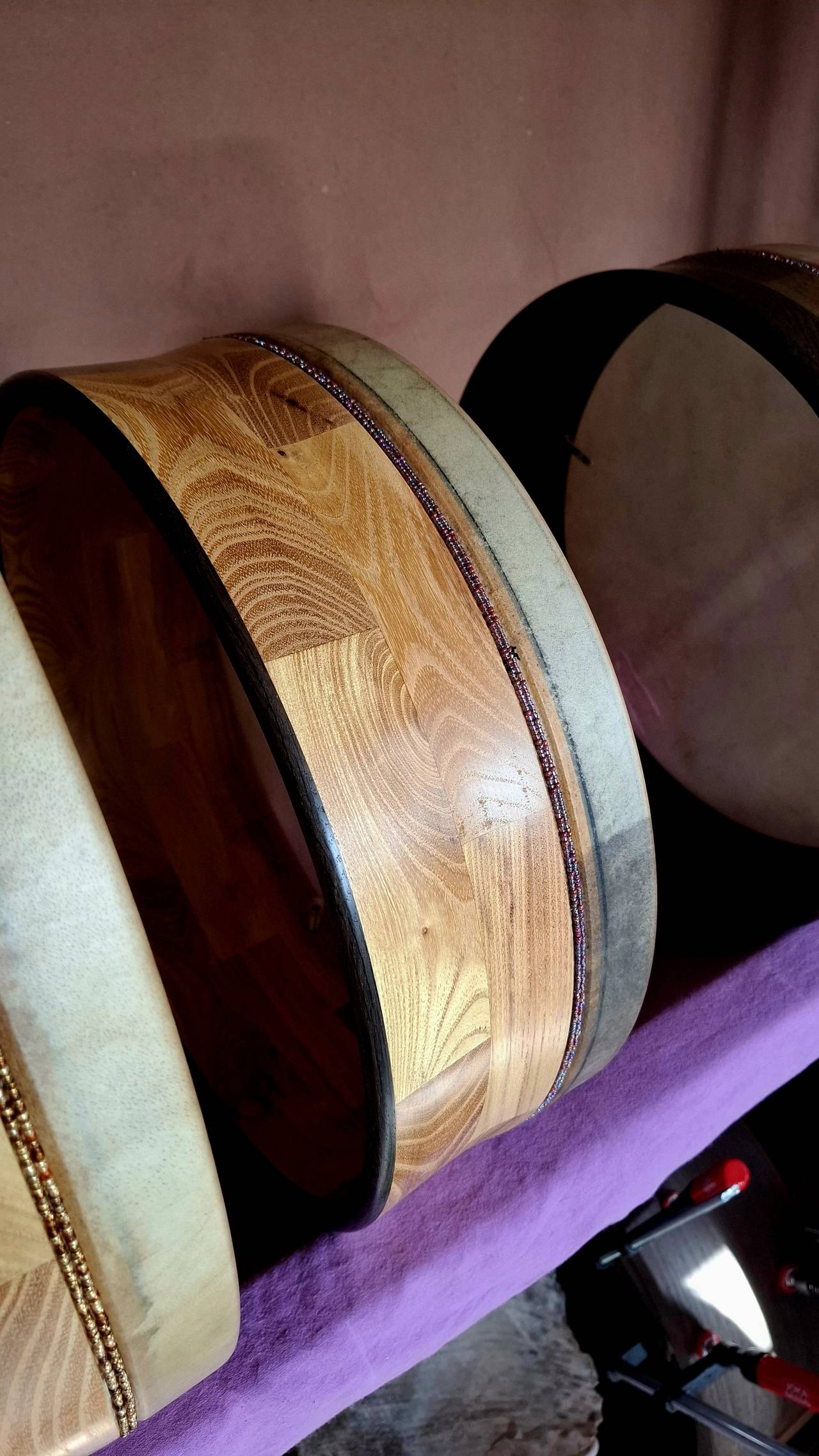 Bęben obręczowy Zohar Fresco Signature Series, wykonany z drewna akacjowego oraz 4000-letniego czarnego dębu oraz cielęcej skóry. Strojenie bębna typu „air tunning” czyli poprzez dopuszczanie lub upuszczanie powietrza w dętce ukrytej pomiędzy skórą a ramą bębna.