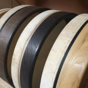 Bęben zrobiony z drewna czarnego dębu, akacji oraz z cielęcej skóry. Bęben jest z kolekcji Żelazek standard series. Bęben dostępny jest na zamówienie, koraliki można wybrać inne – na życzenie. Strojenie w bębnie jest bardzo proste – na dętke, każdy da radę!